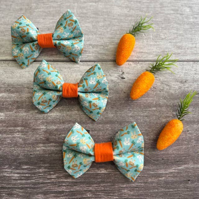Bunnies vlinderdas voor honden Een schattige vlinderdas voor lente en Pasen met onze exclusieve konijntjes in Carrot Field-stof Tag ons op Instagram en laat ons jouw stijl zien! Handgemaakt in onze studio van katoen en elastiek. De plaatsing van het patroon kan variëren. Twee elastische lussen bevestigen de strik aan de halsband van je hond om te voorkomen dat hij wegglijdt en ervoor zorgt dat hij perfect op de halsband zit. Laten we eerlijk zijn, niemand is blij als dingen floppy gaan! Interfacing is toegevoegd voor stabiliteit. De centrale lus kan vrij worden verplaatst, zodat deze gemakkelijker opzij kan worden geschoven om te reinigen. Eén maat. 10 cm x 8 cm. Geschikt voor halsbanden tot 1" breed. Rijg de kraag gewoon door het elastiek aan de achterkant. ZORG Alleen met een vochtige doek reinigen. Vlinderdassen zijn superleuk om te dragen maar niet onverwoestbaar. Houd altijd toezicht tijdens het dragen en controleer regelmatig op slijtage.