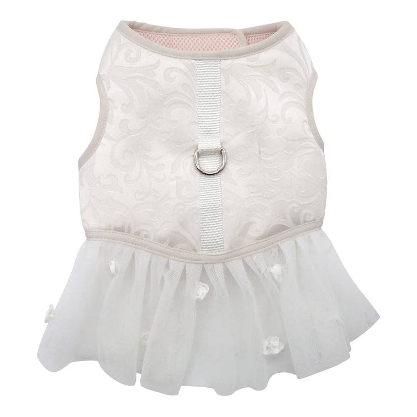 Dit elegante hondenharnas uit de Ceremony collectie is ontworpen voor de meest bijzondere momenten. Of het nu gaat om een bruiloft, fotoshoot of feestelijke gelegenheid, met dit unieke harnas schittert je hond als nooit tevoren. Het ontwerp doet denken aan een verfijnde trouwjurk en maakt van jouw hond een echte blikvanger aan jouw zijde.