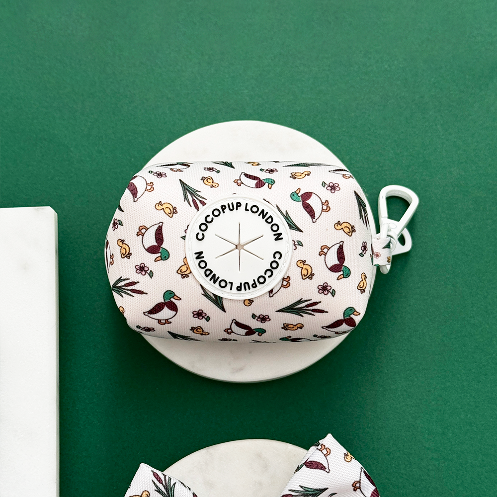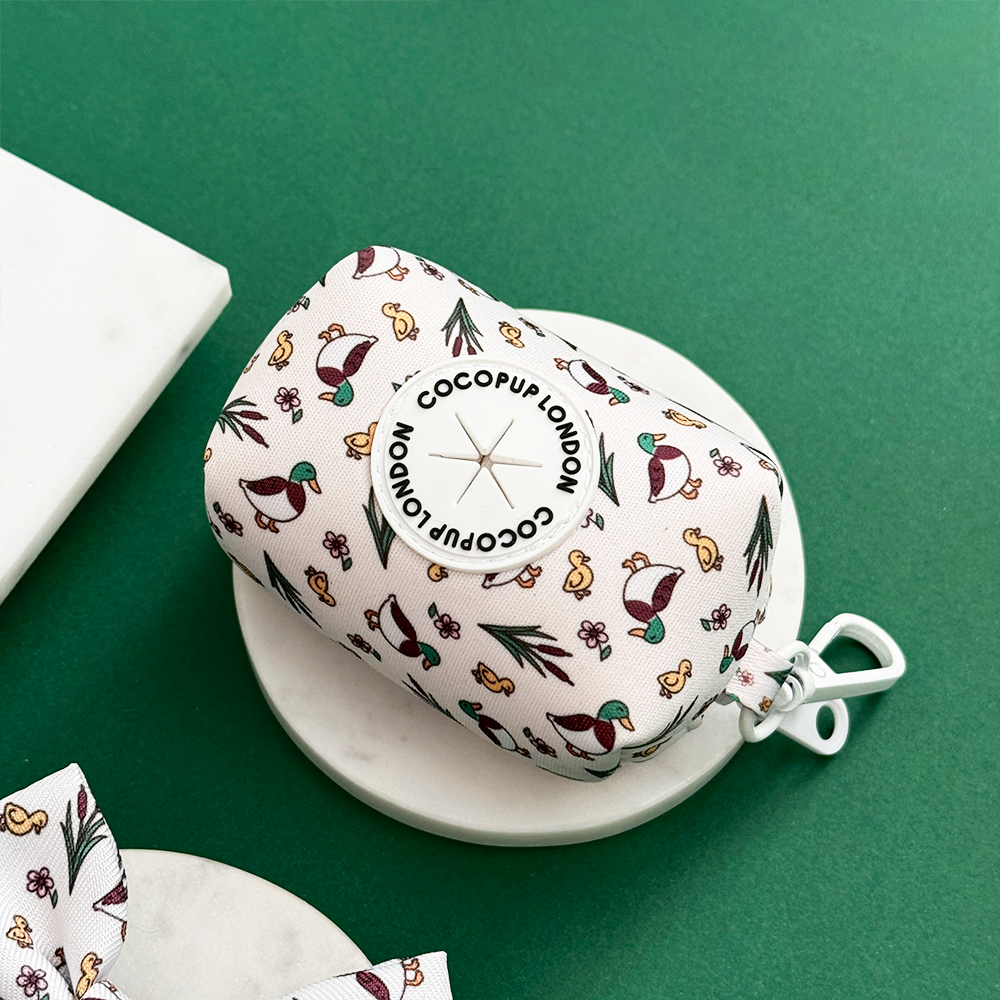 Wie zegt dat een poepzakjeshouder saai moet zijn? Met onze Puddle Pup Poepzakjeshouder geef je zelfs de minst glamoureuze klusjes een stijlvolle twist! Het speelse ontwerp met waggelende eendjes en een frisse groene kleur tovert een glimlach op elk gezicht – zelfs tijdens het opruimen van de minder leuke verrassingen.