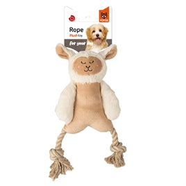 De Fofos Schaap Met Flosbenen Pluche 34X20X3,5 cm hondenspeelgoed is een hondenknuffel van pluche met touw om mee te spelen en knuffelen. Dit schattige speeltje is een zacht, pluche schaap en is heerlijk om mee te knuffelen. De benen zijn gemaakt van touw, waardoor de hond er leuk mee kan spelen, gooien en op kauwen. Kauwen op flostouw helpt bij het verzorgen van het gebit, omdat het materiaal langs de tanden wrijft en zo tandplak en tandsteen kan helpen verminderen.