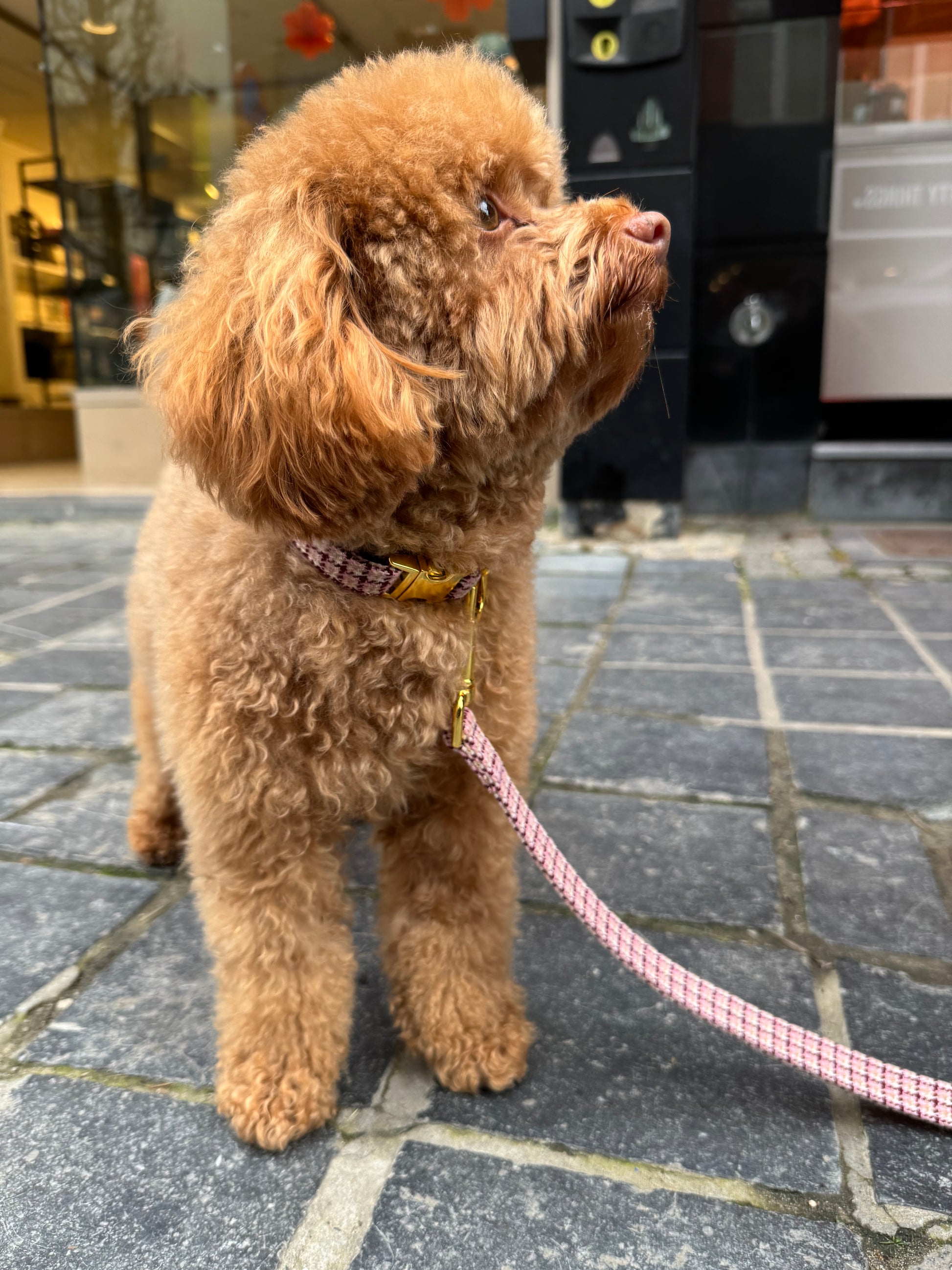 De Carré halsband is ontworpen voor wie houdt van tijdloze elegantie met een zachte twist. De geweven textuur, verfijnde kleuren en gouden details maken dit een halsband die moeiteloos stijl en functionaliteit combineert, perfect voor dagelijkse wandelingen én speciale momenten.