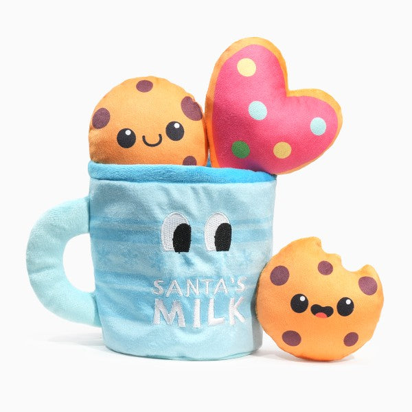 Laat de kerstdromen van je pup uitkomen met de Santa’s Milk and Cookies set! Dit feestelijke speeltje bestaat uit een pluchen melkbeker en drie piepende koekjesspeeltjes, elk met een pieper voor kwispelend staartje. Met verborgen vakjes voor lekkers en een knisperend bekertje kunnen pups zich een weg banen door de feestdagen met gooien, knabbelen en kraken. Perfect voor een eenzame knuffel of een huis vol harige vriendjes.