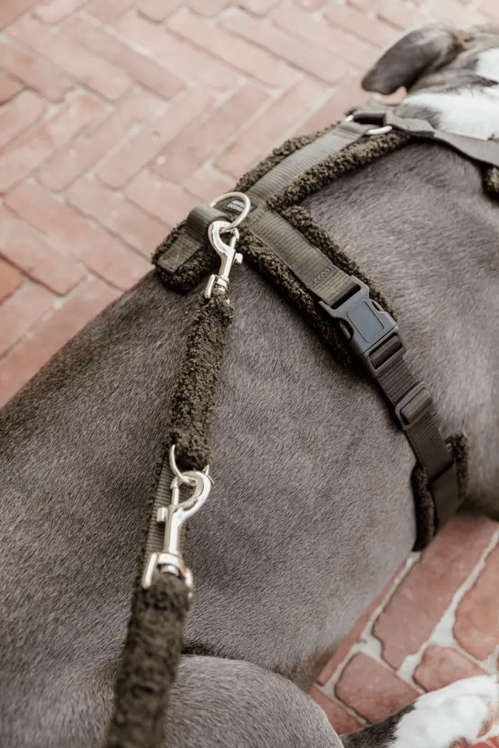 Deze hondenriem heeft aan de buitenkant zo'n schattige uitstraling door het veganistische teddyfleece materiaal. Aan de binnenkant is de riem versterkt met nylon voor comfort en extra stevigheid.