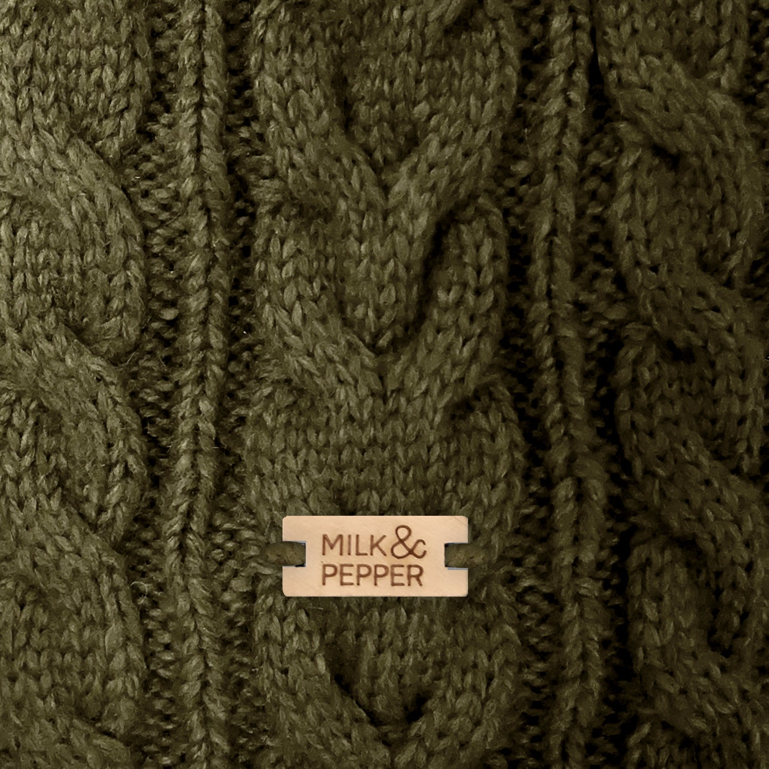 • Stijlvolle details – gegraveerd houten Milk&Pepper plaatje op de onderrug + 2 houten knopen aan de kraag